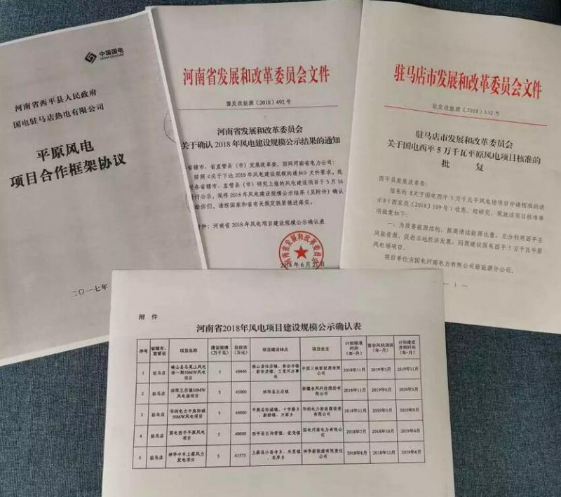 西平风电项目于2017年11月与西平县人民政府签订开发协议,2018年6月列入省年度风电开发建设规模,2018年12月14日取得驻马店市发改委项目核准批复。