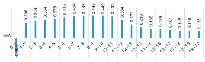 第二个项目位于山东菏泽,是具有一定代表性的平原项目,这个项目比较有意思的一点是,它的各个高度综合拟合风切变达到0.41,像这样的情况,我们就需要对它的切变进行一个更加详细的针对性分析。在当地风切变变化体现在白天地表升温,热稳定度降低,切变减小,夜晚切变增大,秋冬气温较低,大气层结稳定,风切变减小的规律。此外,在中低风速区间,地表障碍物的粘滞效应随着风速增大而加强,使得切变也随之增大,当风速达到强风水平,地表粘滞效应减弱,风切变逐渐回到较为平稳的状态。