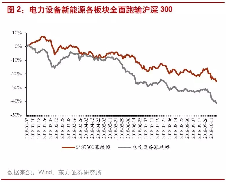 2018年新能源行业受产业政策冲击较大。光伏受“531新政”突袭,迎来行业冰点;风电伴随弃风率持续改善,行业景气度明显回升,但板块估值受政策和盈利能力下降影响下滑较大;特高压大规模重启,相关公司业绩确定性较强;工控行业受宏观经济波动影响短期承压,全年行业规模增幅在10%左右。