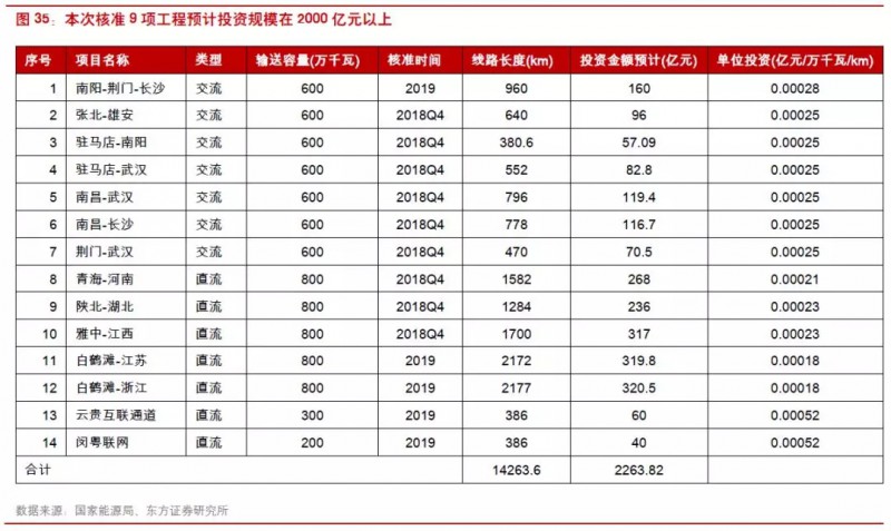 2018年四季度将有“3直6交”核准开工,其余“4直1交”将在2019年内完成核准开工。我们预计2019-2020年将是主设备交付的高峰期,因此这也将对主设备相关供应商的业绩起到较大的推动作用。