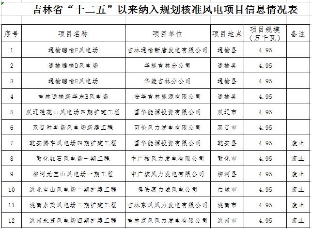 吉林省能源局1月7日发布《关于补充公示“十二五”以来吉林省风电项目有关情况的通知》,公示时间为2019年1月7日-1月11日。其中6个风电项目废止,总装机297MW。以下为公示原文: