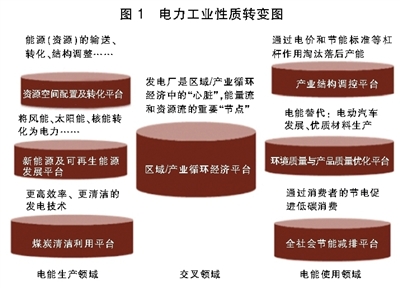 判断2:电力工业的功能性质已经由传统的保障国民经济发展及人民生活水平提高对电力供应的量、质要求(公用性、基础性),拓展为促进能源系统绿色化,进一步成为能源工业的主体和循环经济的核心(见图1)。