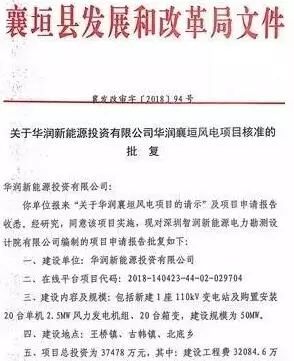 近日,华润襄垣风电项目喜获山西省长治市襄垣县发展和改革局核准批复,该项目建设规模为50MW,包括新建1座110kv变电站及购置安装20台单机2.5MW风力发电机组、20台箱变;总投资为37478万元;建设地点在长治市襄垣县王桥镇、古韩镇、北底乡境内;项目单位为华润新能源投资有限公司。
