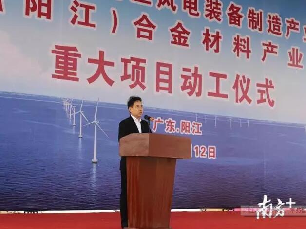仪式上,陈绩表示,近年来,阳江市认真贯彻落实省政府“集中力量建设阳江风电装备产业基地”的有关工作部署,规划建设了7.4平方公里的海上风电装备产业基地,已落户和计划落户项目28个,世界级风电产业基地正加速形成。同时,阳江市还以不锈钢产业为突破口,加快构建现代产业体系,积极引进、培育和发展不锈钢冶炼、热轧、冷轧等产业,合金材料完整产业链条实现新突破,超千亿元的合金材料产业集群已具有雏形。