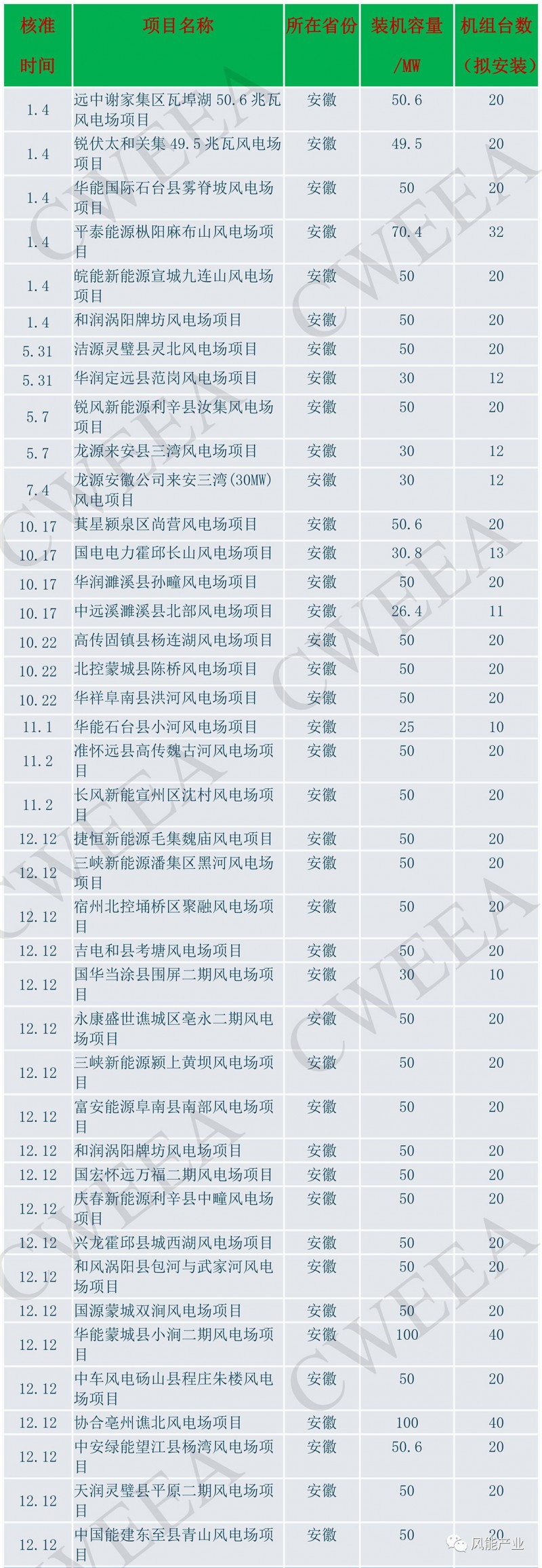 新增核准的140个风电项目中,拟使用风电机组约4282台。