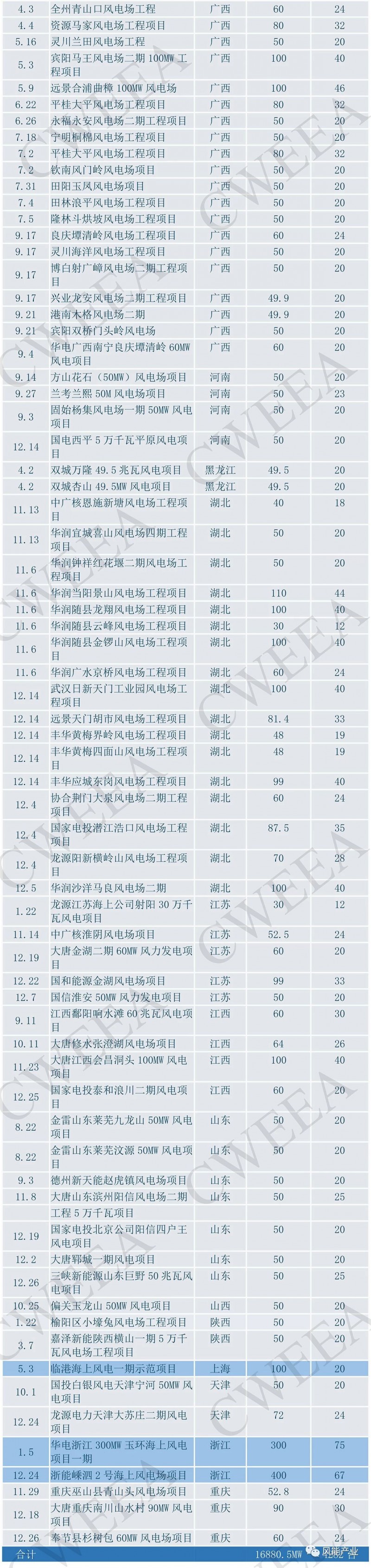 2018年度,我国新增核准风电项目共140个,总容量16880.5MW,其中海上风电项目20个,核准容量达9605.5MW。