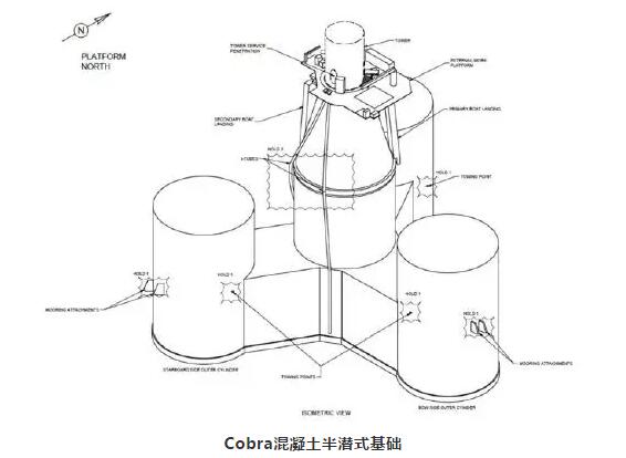 金卡丁项目总装机50MW,7台风机中除首台使用V80-2MW的成品,还将新组装6台MVOW的V164-8.4MW大型海上风机。在风机基础类型上,除使用WindFloat钢结构半潜式基础,还将采用Cobra 混凝土半潜式基础。