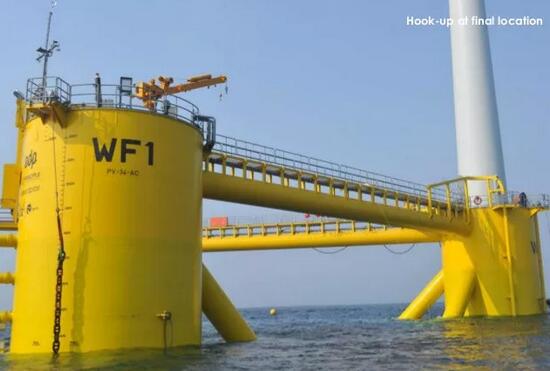 在5年的海上运行过程中,WF1累计发电1700万千瓦时,并经受住了严峻的海洋环境考验(最大浪高17米,最大风速31米/秒),于2016年7月完成历史使命后开始拆除。WF1半潜式基础和系泊系统以及海缆脱离后,直接从现场拖拽至葡萄牙港口锡尼什,在那里将风机从基础上分离。这也是世界上首次从漂浮式基础上拆除风机。经过对基础的仔细检查,状况一切良好。
