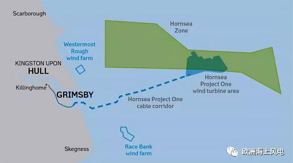 Hornsea One海上风电场计划2020年完工,届时将成为世界最大海上风电场。风场由沃旭集团(50%)和全球基础建设合伙公司(50%)共同持有。