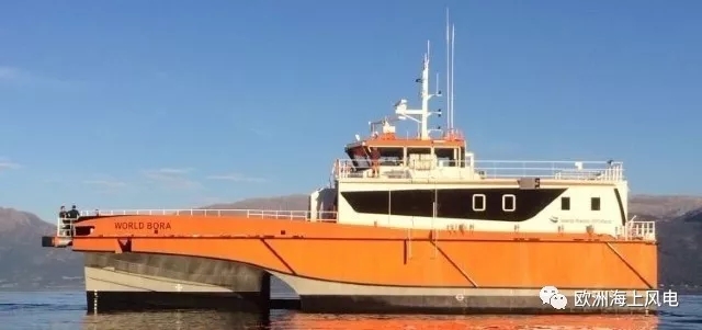 World Bora号由总部位于丹麦Esbjerg港的World Marine Offshore公司运营,是一艘三体船,船长30米,最多搭乘24人,于2014年建造。World Marine Offshore也是欧洲知名的运维船运营公司,旗下有12艘运维服务船,为英国、德国、荷兰、丹麦等多个海上风场提供服务。