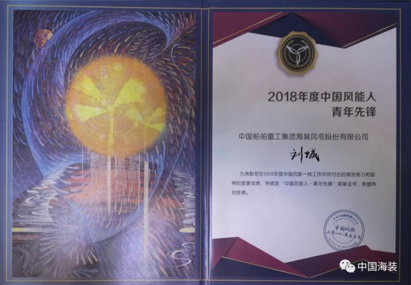 在2019年中国风能新春茶话会上,中国海装工程技术公司副总经理刘城荣获了“中国风能人?青年先锋”奖章,他和团队负责管理的H171-5MW海上风电机组也因“创造三类海上风区3900小时世界纪录”斩获“2018年度最佳机型”。