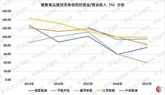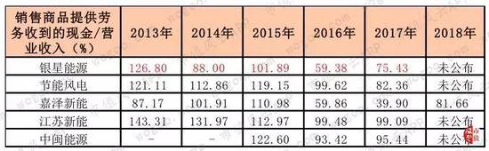 但自2015年以后,银星能源和嘉泽新能两家同处宁夏的上市公司出现明显下滑趋势,银星能源在2016年和2017年分别为59.38%和75.43%;同期嘉泽新能分别为59.86%和39.9%,表明两家公司的回款效率严重下滑。