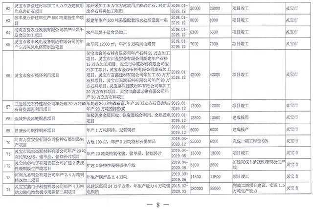 产业结构优化升级项目有1个,灵宝市聚丰风电设备制造有限公司的年产5万吨风电塔筒制造项目,该项目主车间12000㎡,年产5万吨风电塔筒,总投资7000万元,2019年度投资7000万元,位于灵宝市,目前该项目竣工。