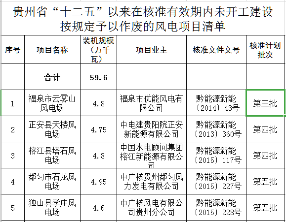 废止338.19万千瓦!贵州省能源局公示废止56个风电项目信息清单(附表)