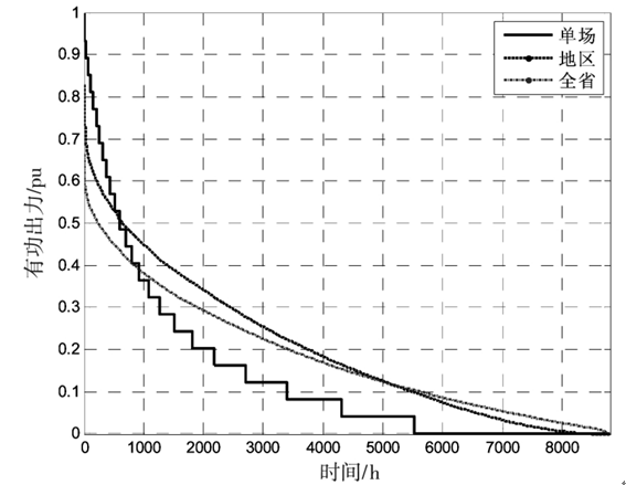 上图分别是我国东北地区某省风电的单场、地区、全省的汇聚效应曲线。全省的汇聚效应曲线是三者之中最平滑的,并且全年中都处于发电状态。也就是说,即使是波动性电源,其保证容量也是显着的大于零的,甚至高至60%以上。
