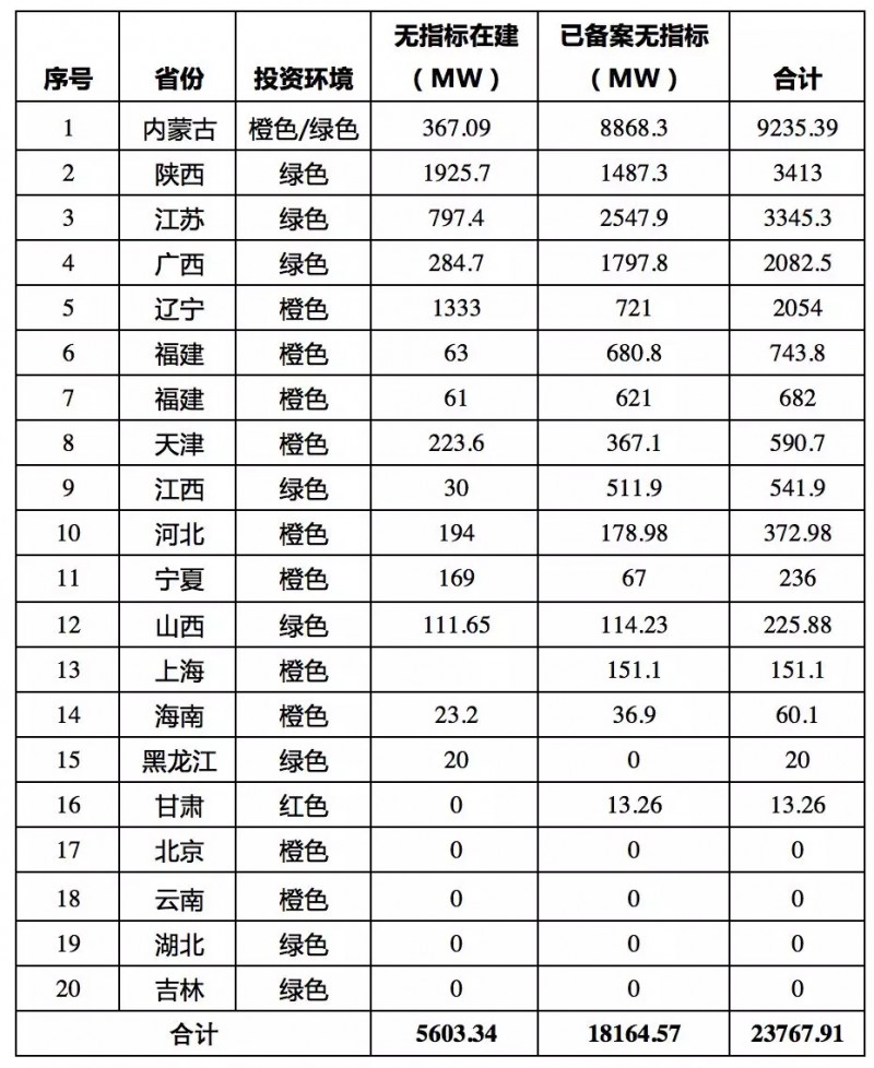 除上述20省之外,山东、浙江、青海、河南、安徽尚未公示,备案的已开工和未开工都应该是1GW以上的规模。