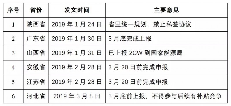 2019年1月31日,山西省能源局发布《关于推进山西省风电、光伏发电无补贴平价上网有关工作的通知》,要求企业在2月22日之前,将试点项目上报省能源局。据了解,山西省收到超过10GW的项目清单,已经将其中优质的2GW项目清单上报到国家能源局。