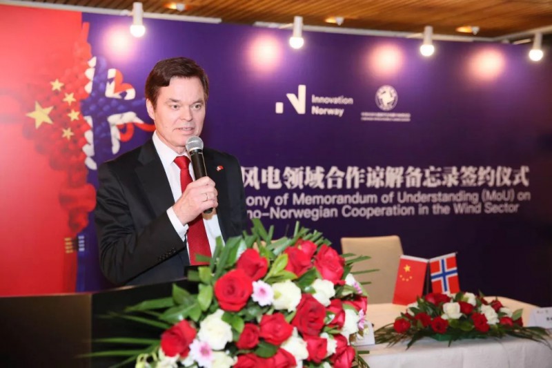 挪威驻华使馆公使、代办大使 Mattis Raustøl 对前来参加签约仪式的各位嘉宾表示欢迎,并表示此次备忘录的签署将增加两国在风电领域的合作机会,推动两国风电领域的共同发展。