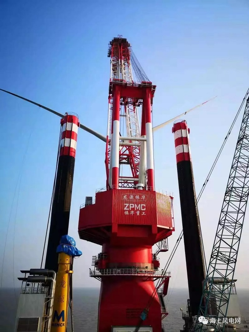 到目前为止,“龙源振华叁号”不负众望,共成功打桩8根、安装风机23台。