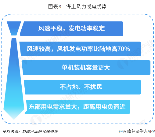 与陆地风力发电相比,海上风力发电具有风力平稳、风机利用率高、单机装机容量大、不占地不扰民等优势。