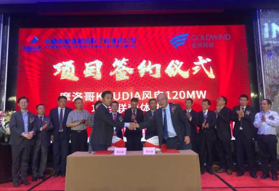 会上,新疆金风科技股份有限公司(下称“金风科技”)子公司金风国际副总经理吴昊与中国电建国际公司副经理李斯胜签署了摩洛哥Koudia 120MW项目投标联营体协议,金风科技集团国际战略总监潘彦田及其他平台企业领导人共同见证了签约活动。
