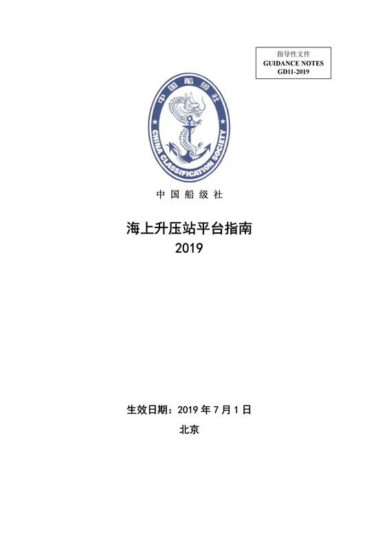 中国船级社发布《2019海上升压站平台指南》2019年7月1日正式生效: