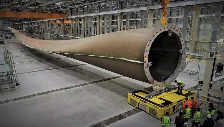 据前段时间的最新报道,在LM风电公司的法国瑟堡的工厂,为GE's Haliade-X12兆瓦海上风电机组生产的第一支叶片已完成脱模工作,这只叶片有107米之长,它是世界上第一支超过100米的风机叶片。