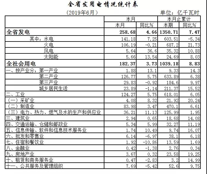 6月份,全社会用电182.37亿千瓦时,增长3.73%,其中工业用电124.27亿千瓦时,增长5.75%。