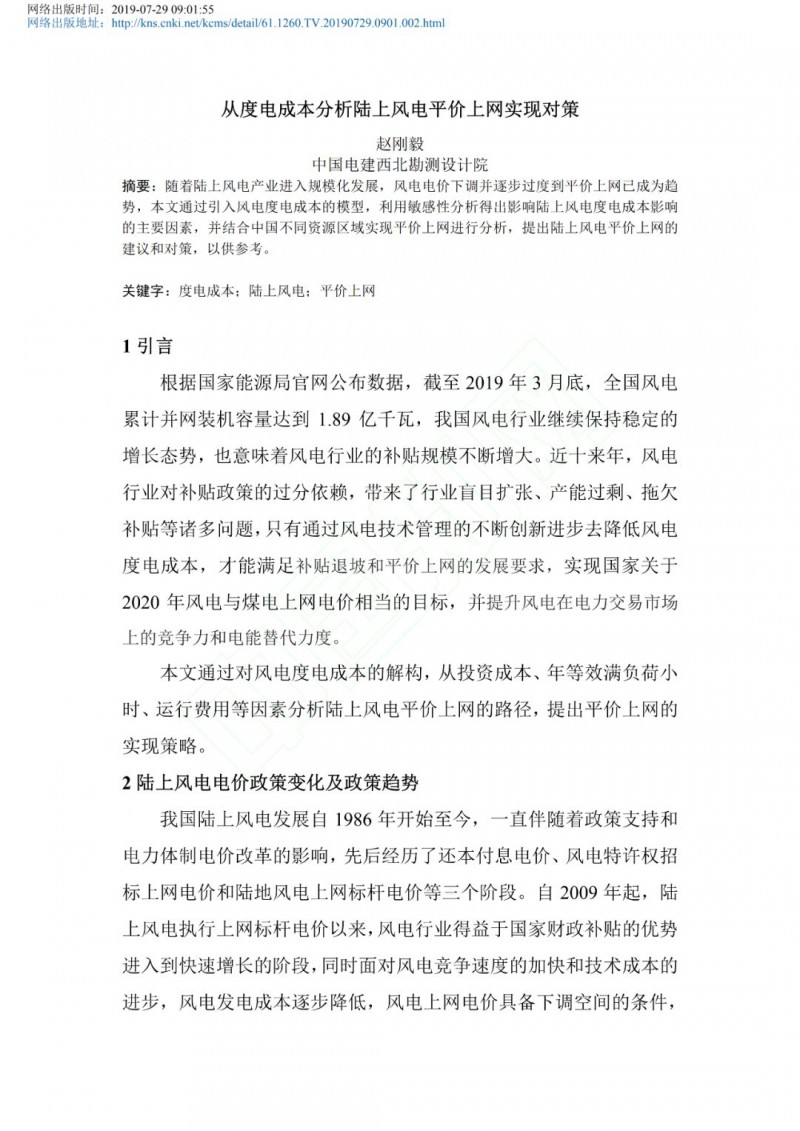 从度电成本分析陆上风电平价上网实现对策