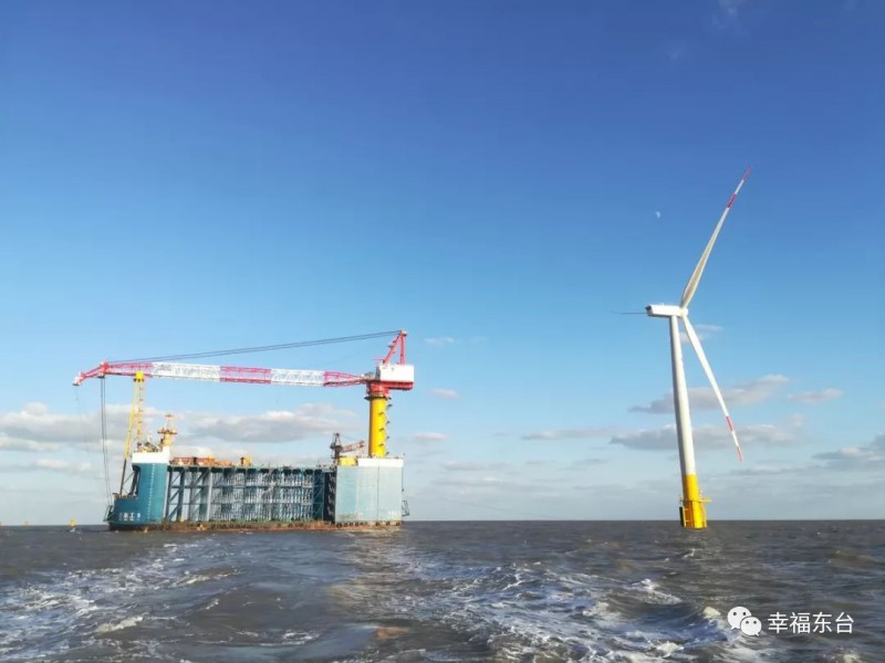 面临天文大潮,工程施工人员迎难而上,争分夺秒抢工期,安全准确地完成了风机吊装任务,为项目早日竣工打下了坚实的基础。