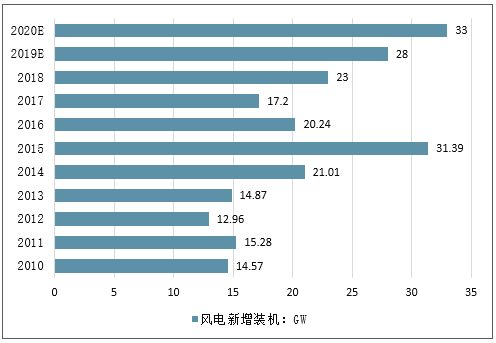2010-2020年中国风电新增装机情况预测