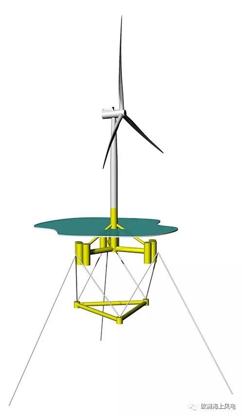 该基础是一个四面体,钢结构由标准化的模块组成,而模块可在工厂内完成制作,在码头拼装即可,一套完整的基础仅需数周就能完成。在码头上及湿拖过程中,浮式龙骨可收起,等拖到安装位置,再利用充气压载舱将其放低,提供足够的稳定性。