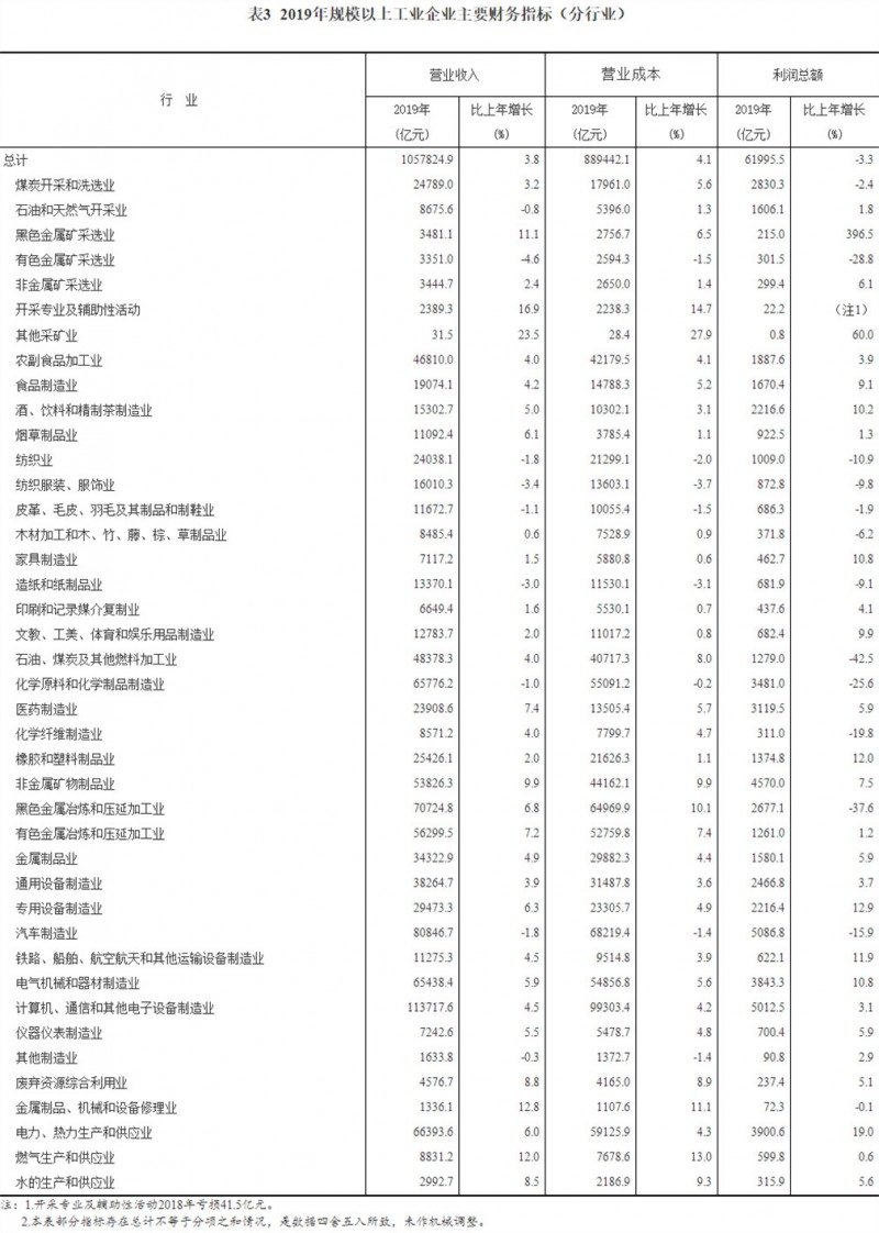2月3日,国家统计局发布了2019年全国规模以上工业企业利润情况。