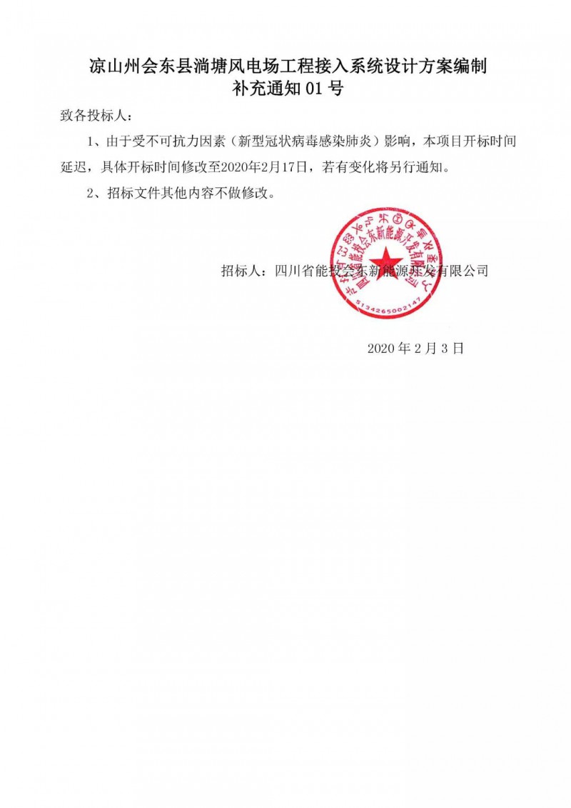 凉山州会东县淌塘风电场工程接入系统设计方案编制补充通知01号