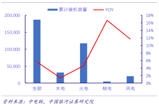 图1:分类型累计装机容量及同比变化(2019年11月)