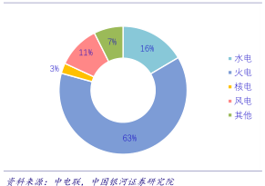 传统装机仍占主导地位,新能源实现较快增长。截至 2019年11月,全国发电装机容量达18.74亿千瓦,同比增长5.6%。其中,火电装机11.77亿千瓦,增长 4.6%,占发电装机容量的 62.8%;水电3.09亿千瓦,增长1.4%;其他新能源总计3.88亿千瓦,同比增长12.5%。