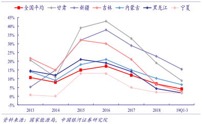 图8:2013-2019年全国红六省弃风率情况