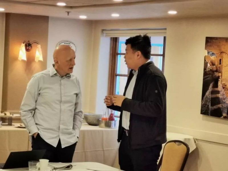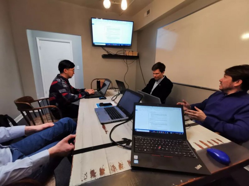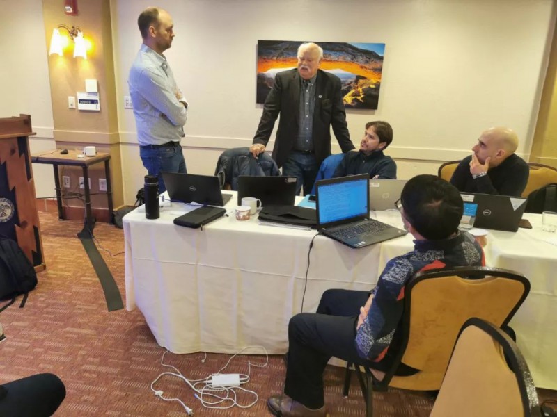 场址适应性小组组长(左1)和-15组长(左2)讨论标准发布进展