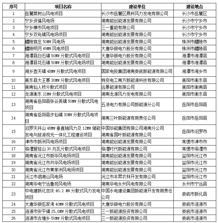 为贯彻落实《国家能源局关于加快推进分散式接入风电项目建设有关要求的通知》(国能发新能〔2017〕3号)精神,按照《国家能源局关于2019年风电、光伏发电项目建设有关事项的通知》(国能发新能〔2019〕49号)要求,省发改委下发了《关于组织开展分散式风电试点工作的通知》(湘发改能源〔2019〕761号),组织建设一批分散式风电试点项目。近期,我们对上报的项目从是否符合分散式标准、是否具备接入消纳条件以及项目技术经济性等方面进行了评估,研究确定了2019年分散式风电试点项目清单,共计26个项目,现予以公示。