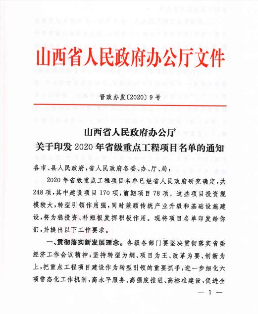 近日,山西省人民政府印发2020年省级重点工程项目名单,共248项工程。其中,建设项目170项,包括100项新兴产业项目,其中风电项目达到100万千瓦。