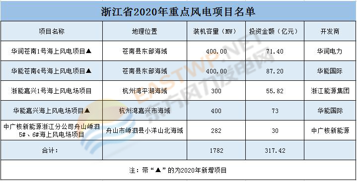 1.78GW,317.42亿元!浙江2020年重点5个海上风电项目出炉!