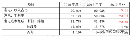 1.风电的销售毛利率比较可观。该公司2019年风电收入占94%。发电产品销售毛利率为57.11% (上年为58.04%)。