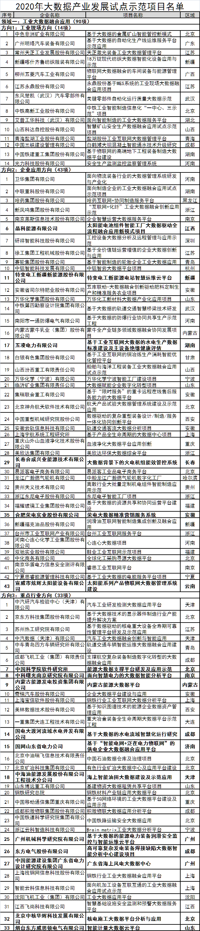 附件:2020年大数据产业发展试点示范项目名单