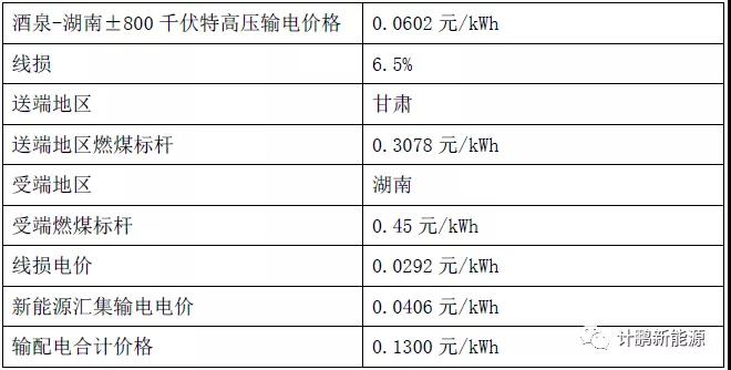 同样通过酒泉—湖南±800千伏特高压直流输电工程,运往湖南省消纳,项目输配电价为0.1300元/kWh。