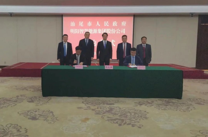 5月14日,明阳智慧能源集团股份公司与汕尾市人民政府举行战略合作框架协议签约仪式。汕尾市委书记张晓强,市委副书记、代市长逯峰和明阳智慧能源集团股份公司董事长兼首席执行官张传卫共同出席仪式并见证签约。