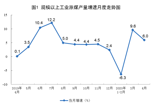 原煤生产增长较快。4月份,生产原煤3.2亿吨,同比增长6.0%,增速比上月回落3.6个百分点;日均产量1074万吨,环比减少14万吨。1—4月份,生产原煤11.5亿吨,同比增长1.3%。