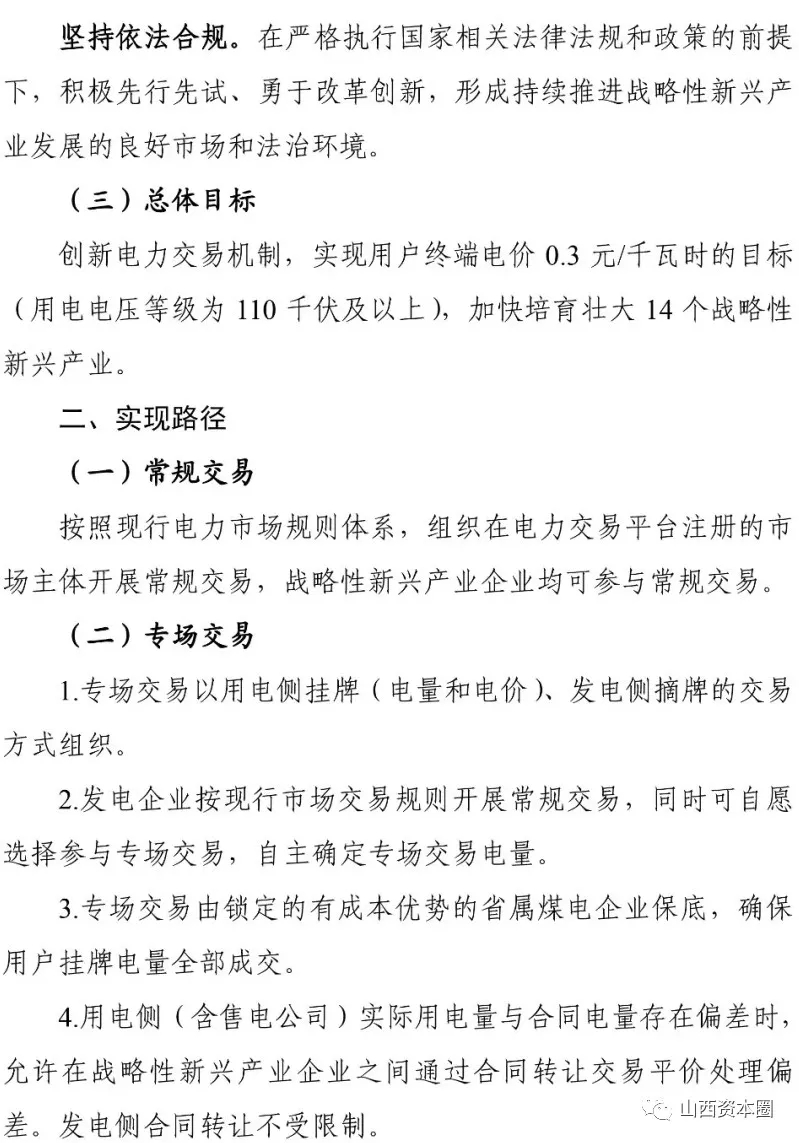 《实施方案》提出一个总体目标,即对用电电压等级110千伏及以上的14个战略性新兴产业用户,实现终端电价0.3元/千瓦时。