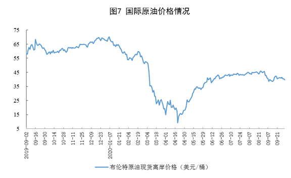 原油进口增速加快,国际原油价格下跌。9月份,进口原油4848万吨,同比增长17.6%,增速比上月加快5.0个百分点。1—9月份,进口原油4.2亿吨,同比增长12.7%。9月30日,布伦特原油现货离岸价格为40.30美元/桶,比8月28日的45.22美元/桶下降10.9%。