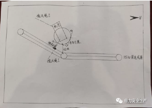 施工人员宁某某在拖拽揽风绳作业过程中,揽风绳与35kV集电线路放电,导致人身触电死亡。