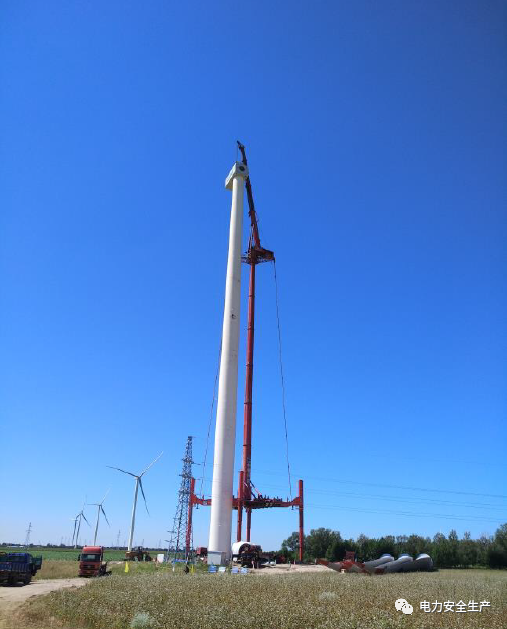 2020年08月15日,吊装单位向监理单位、建设单位提交106#风机吊装专项施工技术方案,按照先吊装T1、T2、T3、T4、T5段塔筒,然后分体吊装机舱再组装叶轮后吊装叶轮的顺序施工。方案中提出“35kV线路需要放线”。方案经监理单位、建设单位项目部审核后批准。08月17日吊装单位办理了106#风机吊装工作票(工作负责人为王某某),经风机厂家、监理单位及建设单位项目部签字批准。当日,王某某因有事离开现场,口头委托安全员杨某某担任工作负责人。